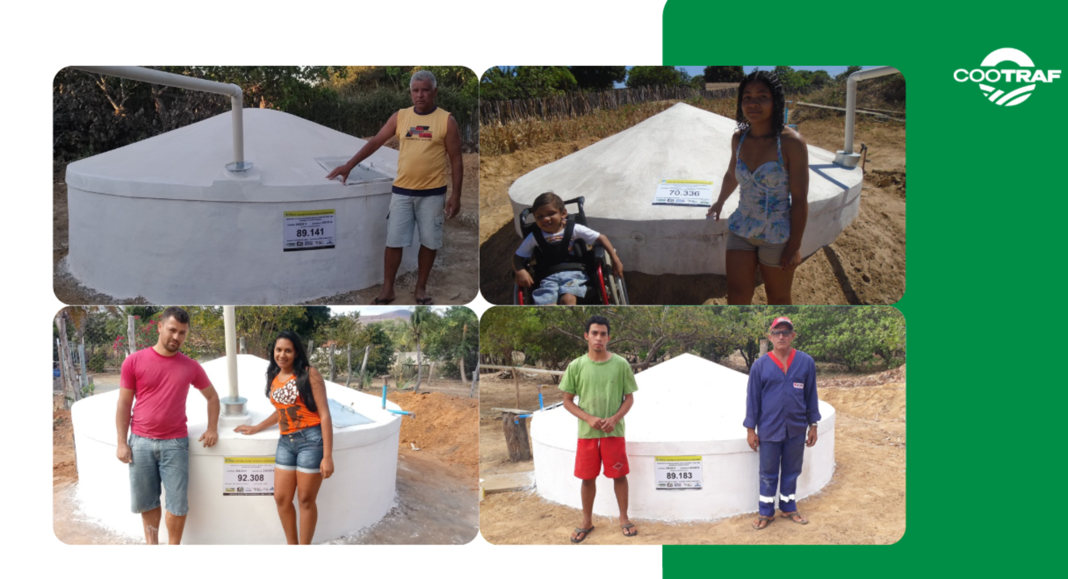 Construção de 1.955 cisternas de placas de 16 mil litros para a captação e armazenamento de água da chuva para o consumo humano, garantindo assim o acesso à água de qualidade às famílias de baixa renda da zona rural dos municípios de Itaetê, Planaltino, Lafaiete Coutinho, Itiruçu, Santa Rita de Cássia e Malhada de Pedras.